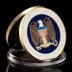 This round, double-sided coin measures 1.57 inches in diameter and 0.12 inches in thickness. Made from a sturdy iron core and finished with a radiant gold plating, it has a solid weight of approximately 1 ounce—just enough to feel its quality in your hand. One side proudly showcases the American eagle, wings spread wide, while the reverse highlights design elements from the National Security Agency and Great Seal, making it visually compelling from every angle.
