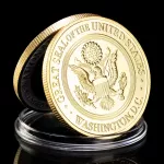 Show your pride in the United States with this striking golden commemorative coin featuring the majestic eagle and the iconic Great Seal. Symbolizing national strength, security, and freedom, this collectible coin is a timeless tribute to American patriotism. Whether you're a coin enthusiast, history buff, or searching for a meaningful gift, this beautifully crafted piece is a must-have addition to any collection or display.