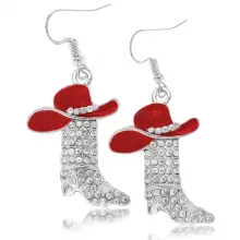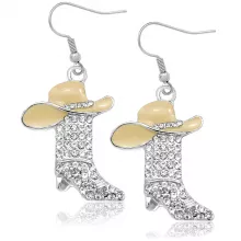 Show off your western spirit with earrings that blend playful design and vintage flair. These enamel cowboy hat and boots drops are more than just accessories – they’re a fun expression of your love for bold fashion and cowgirl charm. Whether you're heading to a country music concert, western-themed party, or just want a touch of southern sass in your everyday outfit, these earrings deliver the perfect mix of sparkle and style.