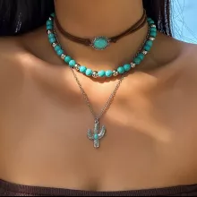 Use our battle tested marketing materials for Bohemian Layered Blue Stone & Velvet Pendant Necklace with Cross & Cactus
