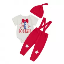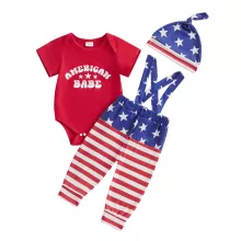 Use our battle tested marketing materials for Baby Boy 4th of July Romper Outfit Set – Star Print Suspender Pants & Hat