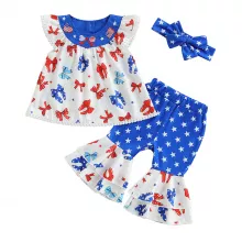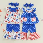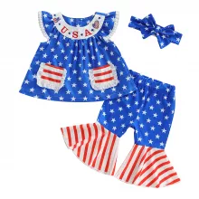 Make this Independence Day unforgettable with our adorable Toddler Baby Girl 4th of July Outfit Set! Designed for cuteness and comfort, this charming 3-piece set includes a sleeveless top, stylish flare pants, and a matching headband — everything your little firecracker needs to shine at summer parties, parades, and family photos. This outfit is crafted with a soft, breathable blend of polyester and spandex that keeps your toddler cool and comfy even on the warmest summer days. The sleeveless top allows for easy movement, while the flared pants add a fun, fashionable twist to a patriotic celebration look. And the matching headband? The cherry on top that ties the whole ensemble together! Whether you're heading to a barbecue, beach outing, or just celebrating in the backyard, this outfit brings festive flair and all-day wearability. Designed for spring, summer, and early fall, it's the go-to choice for stylish little girls aged 6 months to 4 years.Why You'll Love It
