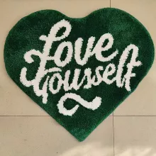 Use our battle tested marketing materials for Green Heart Tufted Rug with “Love Your Self” Lettering – Soft & Aesthetic Mat