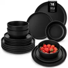 Use our battle tested marketing materials for 36-Piece Black Reactive Glaze Stoneware Dinnerware Set – Microwave & Oven Safe