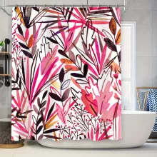 Use our battle tested marketing materials for Pink Floral Shower Curtain with Black Leaves - Waterproof Fabric Bathroom Decor
