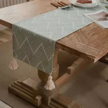 With a subtle jacquard weave and striking geometric patterns, this runner is perfect for minimalist, contemporary, or Nordic-inspired interiors. The soft tassels at the ends add a delicate finishing touch, while the tightly woven fabric ensures long-lasting quality. Designed for both function and aesthetics, this table runner protects your surfaces from scratches and stains while instantly elevating your table décor.