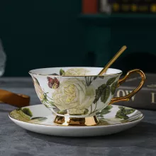 Indulge in a sophisticated tea or coffee experience with this 3-piece European bone china cup set. Featuring a beautiful floral design and graceful silhouette, this set includes a matching cup, saucer, and spoon—perfect for elevating your daily routine or impressing guests during special gatherings. Whether you're enjoying a quiet cappuccino in the morning or hosting an elegant afternoon tea, this porcelain set brings a touch of charm and luxury to every table.