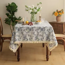 Bring a cozy, rustic feel to your space with this French retro-inspired fringed tablecloth in classic blue and white. With its soft cotton-linen blend look and pastoral plant pattern, this tablecloth adds a relaxed yet elegant vibe to your dining table, kitchen, or photography setup. Whether you're hosting a brunch, enjoying an everyday family meal, or creating a warm backdrop for photos, this piece instantly elevates the mood with its timeless country charm.