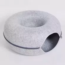 Introduce your cats to the perfect blend of comfort and fun with this Donut Cat Bed designed for two cats. Crafted from high-quality felt, this soft and durable pet nest doubles as a cozy resting spot and an engaging tunnel for playful adventures. Its clever donut shape provides a secure and warm space your furry friends will love to curl up in, while the interactive tunnel invites curiosity and active play.