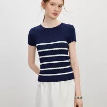 Use our battle tested marketing materials for Women's Striped Knit Short-Sleeve Sweater with Back Cut-Out - Summer Pullover