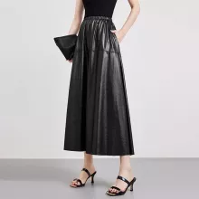 Use our battle tested marketing materials for Vintage Black PU Leather A-Line Skirt for Women with Pockets – Spring Style