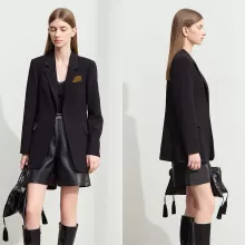 Use our battle tested marketing materials for Women's Mid-Length Lapel Blazer with Shoulder Pads – Office to Evening Style