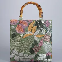 Use our battle tested marketing materials for Sequin Embroidered Linen Tote Bag with Bamboo Handle – Summer Beach Purse