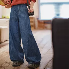 Use our battle tested marketing materials for Vintage Washed Wide-Leg Cotton Denim Jeans for Women – Floor-Length Fit