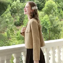 Use our battle tested marketing materials for Women's Retro Tweed Short Coat with Beaded Collar - Vintage Autumn Jacket