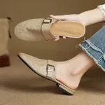 Step into refined simplicity with these genuine leather lattice mules — the perfect sandals for women who love breathable comfort without sacrificing elegance. With a modern twist on the classic closed-toe design, these sandals feature a subtly hollow lattice upper that offers both aesthetic flair and added ventilation. The round toe and low 0.6 inch (1.5 cm) square heel create a look that’s casual yet sophisticated — a must-have for summer wardrobes that value chic functionality.