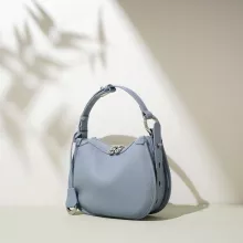 Use our battle tested marketing materials for Minimalist Blue Cowhide Leather Saddle Shoulder Bag for Women