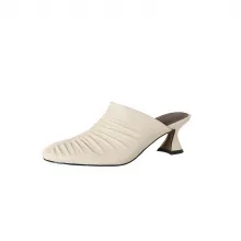 Use our battle tested marketing materials for Genuine Leather Round Toe Mules with Pleated Design