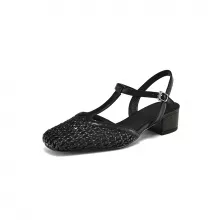 Use our battle tested marketing materials for Square Toe Fabric and Leather Slingback Mary Jane Sandals with Chunky Heel