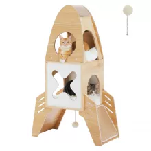 Use our battle tested marketing materials for Modern Rocket Cat Tree – Wooden Space-Themed Tower with 2 Condos & Toys