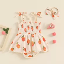 Use our battle tested marketing materials for Baby Girl Peach Print Summer Romper with Headband
