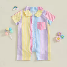 Use our battle tested marketing materials for Baby Boy Summer Romper - Colorful Stripe Button-Up Jumpsuit with Lapel