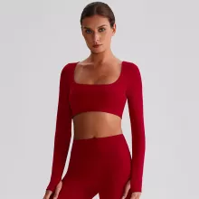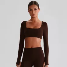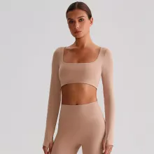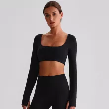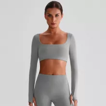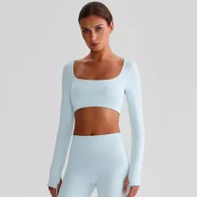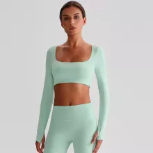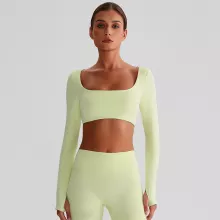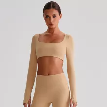 Use our battle tested marketing materials for Women's Long Sleeve Square Neck Yoga Crop Top – Quick Dry, Breathable, Stylish