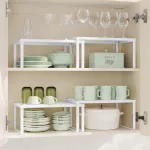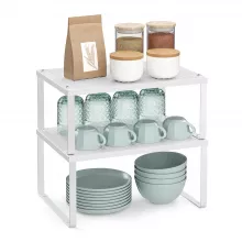 Give your kitchen a stylish upgrade and your cabinets a much-needed boost in storage with this set of expandable, stackable shelf organizers. Designed to optimize vertical space, these chic metal risers are more than just practical—they’re a design statement. Whether you're short on counter space or tired of overcrowded cabinets, these organizers will make your kitchen feel instantly cleaner, tidier, and more functional.