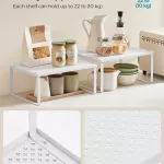 - Heavy-duty capacity: Each shelf holds up to 22 lb of cookware, condiments, or jars