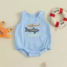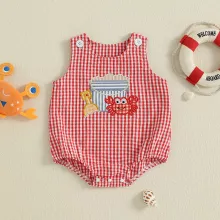 Use our battle tested marketing materials for Baby Boy Summer Romper Sleeveless Plaid Bodysuit with Crab Fish Embroidery