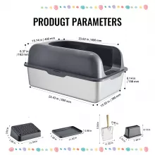 Upgrade your cat’s bathroom with this extra-large stainless steel litter box — a sleek, practical, and long-lasting solution for pet parents who want a cleaner, odor-free home. With a deep 6-inch pan, high sides, and a built-in filtering footboard, this litter box helps prevent messes while giving your cat a spacious, comfortable place to do their business.