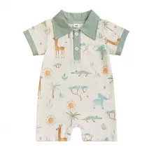 Use our battle tested marketing materials for Baby Boy Animal Print Romper – Short Sleeve Summer Bodysuit with Lapel Neck