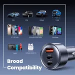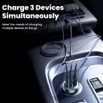 Unlike bulky chargers that clutter your console, this mini charger offers full-power charging in a sleek, travel-friendly form. It doesn’t just power your phone—it powers your experience, reducing downtime and keeping your devices running efficiently. Its smart engineering allows simultaneous fast charging without power drops, making it a reliable and premium addition to any vehicle.