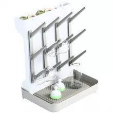 This space-saving drying rack features a vertical layout with multiple prongs and holders to keep bottles upright for faster, more hygienic drying. Made of durable, BPA-free plastic, it's safe for baby gear and built to last through daily use. Its freestanding design offers a compact footprint, making it ideal for countertops with limited space.