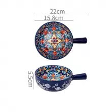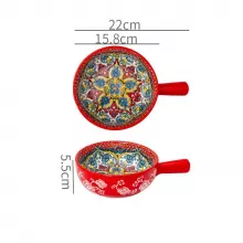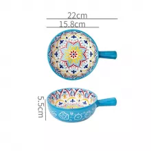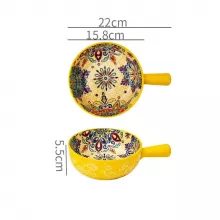Add a splash of creativity to your meals with this bohemian-style ceramic bowl with handle. Designed to blend artistic charm with everyday practicality, this bowl is perfect for everything from fresh fruit and colorful salads to instant noodles, baked dishes, and warm comfort foods. With its eye-catching boho patterns, smooth ceramic glaze, and thoughtfully designed handle, this bowl turns casual dining into an experience full of color and character.