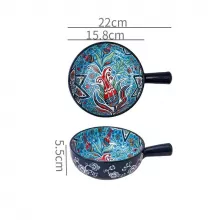 Crafted from premium, heat-resistant ceramic, this bowl is not only beautiful to look at—it’s also built for performance. The sturdy handle allows for easy carrying, even when the bowl is hot, making it ideal for serving dishes straight from the oven or microwave. Whether you're enjoying breakfast at home, prepping a single-serve baked dish, or plating snacks for guests, this piece of tableware delivers convenience without compromising on aesthetics.