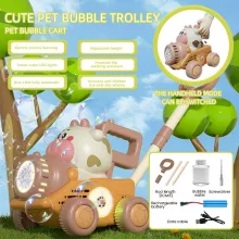 Handheld Cartoon Bubble Blower Machine with Lights & Trolley for Kids