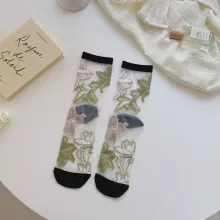 Use our battle tested marketing materials for Ultra-Thin Floral Mesh Embroidery Socks for Women – Transparent Silk Middle Tube