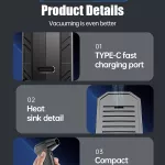 This blower features a brushless turbofan motor that reaches up to 200,000 RPM, providing ultra-strong airflow to tackle dust, sand, pet hair, and other fine debris. Its ergonomic, one-hand control design offers infinite speed adjustment, so you can switch from gentle to powerful bursts of air with a simple twist. Equipped with a built-in 6000mAh lithium battery using dual 21700 cells, you can enjoy up to 4 hours of low-frequency cleaning on a single charge. Recharge quickly and easily via the convenient Type-C port.