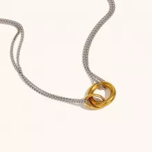 Use our battle tested marketing materials for Mixed Metal Double Chain Necklace with Ring Pendant, Waterproof Stainless Steel