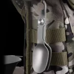 Crafted from high-quality titanium alloy with stainless steel components, this spork offers unbeatable strength without adding bulk to your pack. Measuring approximately 5.1 to 7.2 inches in length, it folds down compactly to save space and slides easily into your pocket, pouch, or mess kit. With a fork on one end and a spoon on the other, it handles all types of meals—soups, pasta, rice, or even campsite grilling—with ease.