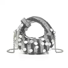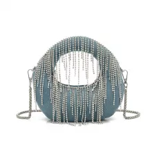 Use our battle tested marketing materials for Luxury Denim Rhinestone Evening Clutch with Tassel & Chain Strap