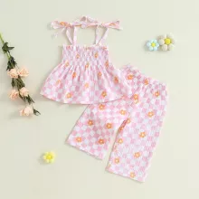 Use our battle tested marketing materials for Toddler Girl Summer 2-Piece Outfit Spaghetti Strap Top with Plaid/Dot Pants