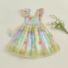 Let your little one shine this summer with our adorable Butterfly Print Toddler Girls Dress. Designed with playful fly sleeves and sweet frill details, this dress brings a perfect mix of comfort and charm. Made from soft, lightweight polyester, it feels gentle on delicate skin, making it an ideal choice for warm days. The vibrant butterfly print adds a magical touch, perfect for little girls who love a bit of whimsy in their wardrobe. Whether for casual outings, family gatherings, playdates, or birthday parties, this dress is a go-to favorite. Its A-line silhouette allows easy movement, while the knee-length design keeps it cool and breezy. The O-neck and short sleeves make it simple yet stylish — a perfect everyday dress with a fashionable flair. What makes this dress special? It’s thoughtfully crafted with attention to detail. The soft frills, the pretty fly sleeves, and the eye-catching print make it stand out from ordinary toddler dresses. Easy to slip on and comfortable for all-day wear, it’s a practical and adorable choice for any occasion. Give your little girl a dress she’ll love to wear again and again. Make every summer moment picture-perfect!