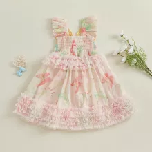 Butterfly Print Toddler Girls Dress with Fly Sleeves and Frills
