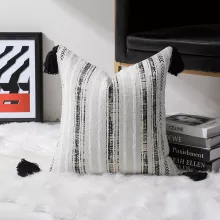 Use our battle tested marketing materials for Chenille Stripe Throw Pillowcase with Fringe – Soft Geometric Cushion Cover
