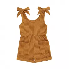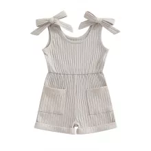 Let your little one stay cool and cute all summer long in this adorable sleeveless ribbed romper. Designed with a soft cotton blend and a breathable sleeveless cut, this one-piece is a warm-weather essential for babies and toddlers aged 6 months to 4 years. Whether she's playing at the park, attending a family gathering, or just lounging at home, this romper delivers all-day comfort without sacrificing style. Featuring a solid color design and subtle ribbed texture, it brings a modern, minimalist look that's easy to mix and match with other accessories. Two small front pockets add a charming touch — perfect for tiny treasures or simply a dash of extra cuteness. The covered button closure at the bottom makes diaper changes quick and fuss-free, so busy parents will appreciate the thoughtful design as much as the little ones enjoy wearing it. This romper isn't just adorable; it's also practical. Its lightweight, breathable fabric makes it ideal for warm weather, while the stretchy ribbed material allows your child to move freely and comfortably during playtime, naps, or outings.