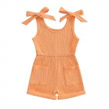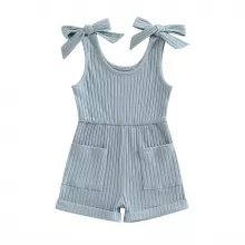Baby Girl Sleeveless Ribbed Romper with Pockets – Summer One-Piece Outfit