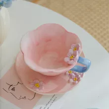 Use our battle tested marketing materials for Embossed Petal Ceramic Tea Cup with Saucer – Elegant Porcelain Mug