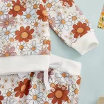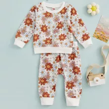 Let your baby girl bloom in comfort and charm with this delightful Baby Girl Fall Outfit Set. Designed for those crisp autumn days and cozy spring mornings, this three-piece set features a long sleeve round neck pullover adorned with a beautiful floral print, elastic waist trousers, and a matching headband to complete the look. Whether it's a casual day out or a photo-ready moment at home, your little one will be dressed to impress — all while staying snug and stylish. Crafted from a soft cotton blend, the fabric feels gentle on your baby’s skin while offering breathability and flexibility for playful movement. The floral pullover adds a pop of sweet personality, and the stretchy waistband on the pants ensures a comfy, fuss-free fit. The coordinating headband brings the entire outfit together with an adorable final touch that moms and babies alike will love.Key Features